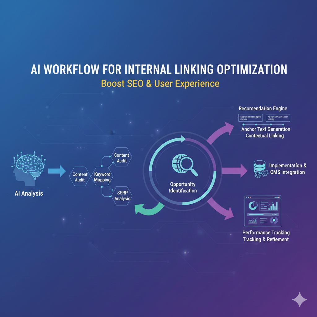 Alt text: AI workflow for internal linking optimization with intent-aware connections